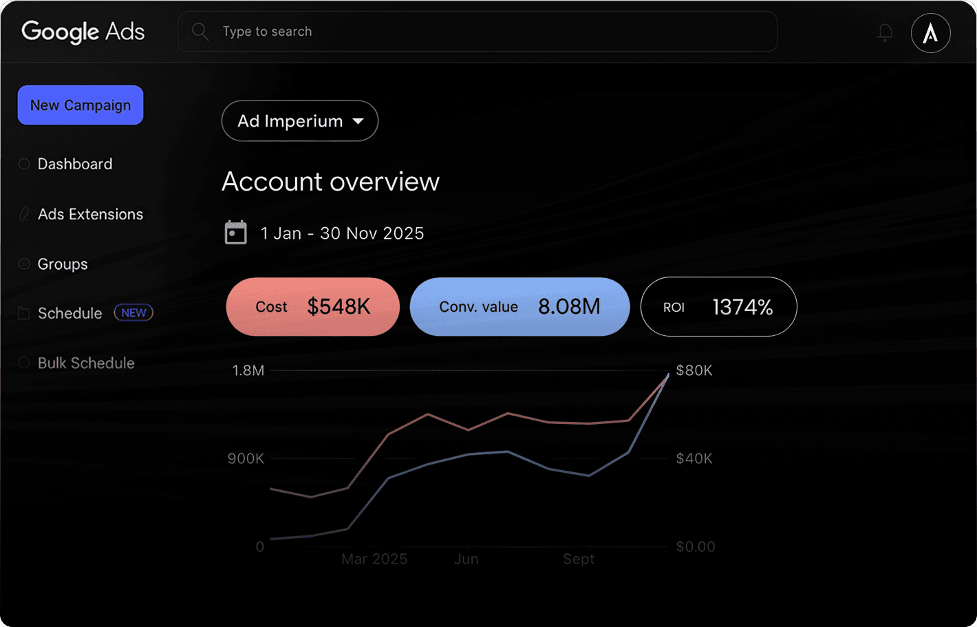 We’re not a fit if you’re looking for cheap management, quick hacks, or someone to “test things and see.” Ad Imperium is built for brands that already have demand, product-market fit, and the ambition to scale profitably and become a market leader within Google ads If you care about structure, data, and long-term growth, you’ll feel at home